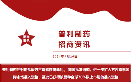 【战略合作招商】普利制药注射用盐酸万古霉素获奥地利、德国批准通知,进一步扩大万古霉素国际市场准入资格!