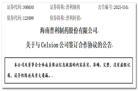 普利制药与Celsion公司达成合作,进军DNA疫苗领域!
