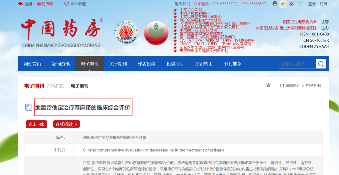 最新发布|地氯雷他定临床综合价值高于氯雷他定