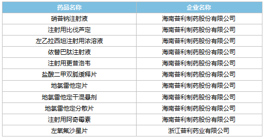 表1:普利制药通过/视同通过一致性评价产品清单