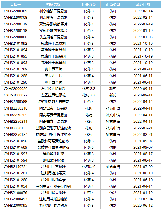 表2:普利制药正在审评产品清单